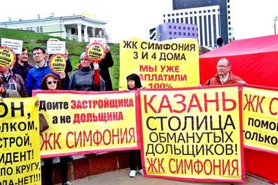 На митинге было много обманутых дольщиков. Основной лозунг "Мой город – столица обманутых дольщиков" стал 1 мая для них основным. Их представители – Марат Гатауллин и Камиль Садыков – выступили с требованием немедленно достроить дома (фирмы "Фон" и "Свей") и достроить без доплаты.