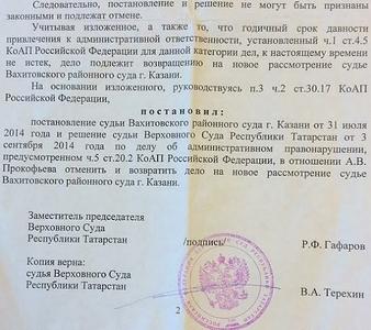 «Дело» об административном правонарушении вернули в Вахитовский райсуд на новое рассмотрение, штраф, назначенный депутату Артёму Прокофьеву за якобы несанкционированное шествие в центре Казани 1 мая этого года, – отменён.
