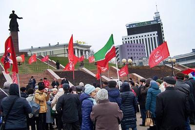 На площади около памятника революционеру Муллануру Вахитову под красными флагами собрались коммунисты и комсомольцы, сторонники КПРФ, активисты общественного движения обманутых дольщиков, представители независимого профсоюза, «Левый фронт», «Дети войны» и простые горожане.