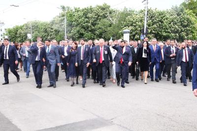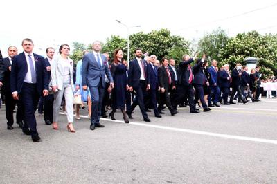 В начале мероприятия Глава Донецкой Народной Республики Денис Пушилин поздравил всех присутствующих с праздником. С приветственными словами выступили представители официальной делегации Российской Федерации – Герой России, действительный государственный советник Российской Федерации I класса Олег Белавенцев, депутат Государственной ДумыФС РФ, Константин Затулин, Казбек Тайсаев, Александр Ющенко, Наталья Поклонская, Андрей Козенко, Глава Республики Крым Сергей Аксенов, Председатель Государственного Совета Республики Крым Владимир Константинов, Президент Республики Южная Осетия Анатолий Бибилов, Глава ЛНР Леонид Пасечник, премьер-министр Республики Абхазия Валерий Бганба зачитал праздничное приветствие от Президента Республики Абхазия Рауля Хаджимбы.