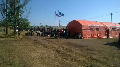 Председатель Исполкома МСКО-ВЛКСМ Ильгам Гаписов, заведующий Отделом ЦК КПРФ по национальной политике, делам СНГ и связям с соотечественниками Чермен Дудати и зав. сектором Совета СКП-КПСС Юлий Якубов также посетили палаточный лагерь с вынужденными переселенцами с Юго-Востока Украины, жизнеобеспечением лагеря занимается МЧС. Видится желание в этой тяжелой ситуации создать максимально возможные нормальные условия для беженцев – одна из палаток даже оборудована под часовню.