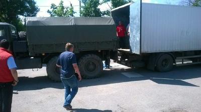«Ночью 24.06.2014 автоколонна с гуманитарным грузом прибыла к месту назначения в Ростовской области. Представители правительства Луганской Народной Республики, встречающие груз, прибыли к нашим товарищам. Идет перегрузка гуманитарной помощи.