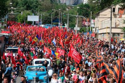 А ранним утром 9 мая жители Молдавии возложили цветы к могилам бойцов павших в Великой Отечественной войне у мемориального комплекса «Вечность». С красными флагами и георгиевскими ленточками молдавские коммунисты во главе с лидером компартии Молдавии Владимиром Ворониным прошли крупной колонной по улицам Кишинева. Шествие завершило торжества в честь Дня Победы.