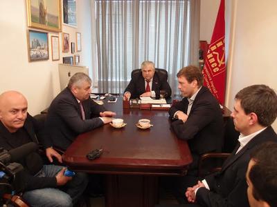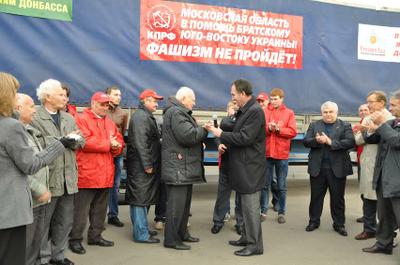 «Штаб КПРФ по оказанию помощи Юго-Востоку Украины с момента его учреждения не прекращал свою работу ни на один день. Сотни машин помощи, собранной нашими коммунистами и сторонниками партии, пересекли уже границу России в направлении ДНР и ЛНР. Медикаменты и продукты питания сейчас очень нужны Новороссии и ее жителям. Гуманитарную помощь ждут, на нее надеются. Трасса Москва-Дон стала самой настоящей дорогой жизни. Об этом теперь знают все: и руководители ДНР и ЛНР, и простые жители, измученные затянувшейся войной, и ополченцы, сражающиеся с порошенковскими карателями. Олег Анатольевич Царев, с которым у нас состоялся разговор, положение Новороссии понимает лучше многих, он глубоко интегрирован в происходящие там процессы. Человек легендарный и мужественный, снискавший уважение миллионов, за свою твердую позицию, за отвагу и стойкость, проявленные им в моменты самых серьезных потрясений на Украине. Мы все очень рады, что этот честный и храбрый человек сегодня находится вместе с нами, и мы вместе с ним вырабатываем стратегию дальнейших действий, в отношении обеспечения жителей Новороссии продуктами и лекарственными препаратами, вопросов вынужденных переселенцев, способствования мирному урегулированию ситуации в ДНР и ЛНР. Олег Царев, безусловно, человек, сердцем болеющий за свой народ. Он прекрасно понимает, что Украина без России не имеет никакого будущего, что без братства славянских народов русский мир обречен на гибель. Именно поэтому он стал на путь борьбы с нацизмом, на путь борьбы за спасение народов, проживающих на территории Украины. В беседе он поднимал множество вопросов, один из которых – положение вынужденных переселенцев. В связи с этим мы приняли решение на следующей неделе вместе посетить ряд регионов Юга России, принявших вынужденных переселенцев из Украины. Планируется посещение пунктов временного размещения в республиках Северного Кавказа, где сейчас проживают тысячи граждан Украины.