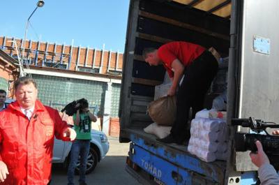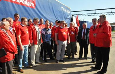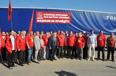 Сегодня утром в 9.00 из «Совхоза им Ленина» делегация депутатов Государственной Думы во главе с заместителем Председателя ЦК КПРФ В.И. Кашиным направила колонну с гуманитарным грузом на Юго-Восток Украины в Луганскую и Донецкую Народные Республики. В отправке груза также приняли участие Руководитель Штаба по оказанию гуманитарной помощи жителям Юго-Востока Украины, первый заместитель Председателя Совета СКП-КПСС, секретарь ЦК КПРФ, депутат Госдумы ФС РФ К.К. Тайсаев, секретарь Московского областного отделения КПРФ, депутат Законодательного собрания Московской области А.А. Наумов, член ЦК КПРФ, депутат Госдумы ФС РФ В.Р. Родин, первый секретарь Московского областного отделения КПРФ, депутат Госдумы ФС РФ Н.И. Васильев, директор ЗАО «Совхоз имени Ленина» Павел Грудинин, комсомольцы, коммунисты Ленинского РК КПРФ.