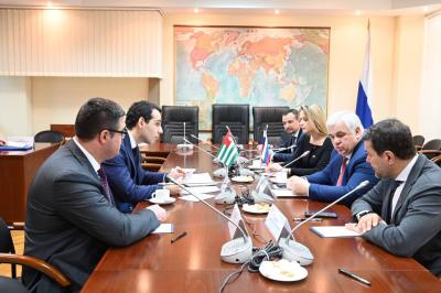 Казбек Тайсаев и Александр Ющенко провели рабочую группу с Министром иностранных дел Республики Абхазия Иналом Ардзибом