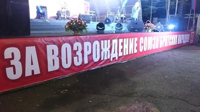 В ожидании начала концерта отличилась немногочисленная, но очень дружная и артистичная делегация коммунистов из КБР, которую возглавлял секретарь рескома и депутат парламента республики Замир Хачимович Канаметов. На их транспаранте было написано: «Кабардино-балкарцы за честные выборы!» В руках - флаги КПРФ и флаг республики, а под баян они пели и лихо отплясывали под русские мотивы.