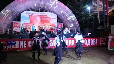 Далее последовала большая и разнообразная концертная программа. Фольклорный вокально-хореографический ансамбль «Слобода» исполнил душевные и задорные казацкие песни и зажигательные танцы. Дважды блеснул своим искусством ансамбль «Звёздочки Осетии». Четыре песни исполнила молодёжная группа «Тайсбенд». С большим воодушевлением были приняты зрителями песни Олега Тайсаева, Рената Батаева, Николая Сахарова.