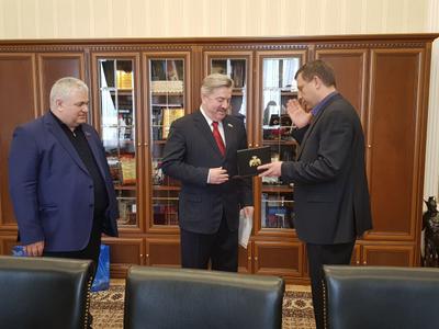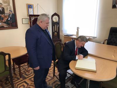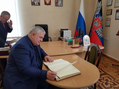 Также в ходе визита в город Донецк состоялась встреча с Председателем Народного Совета ДНР Денисом Владимировичем Пушилиным по вопросам развития межпарламентского сотрудничества.