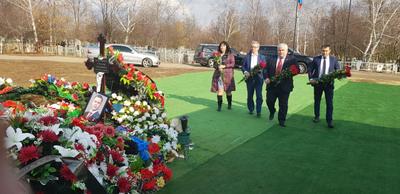 После конференции делегация КПРФ во главе с Казбеком Тайсаевым возложила цветы к могиле первого Главы Донецкой Народной Республики Александра ВладимировичаЗахарченко, с которым Казбека Тайсаева связывала близкая дружба.