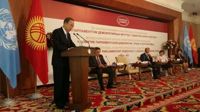 Особую значимость этому важнейшему событию в жизни республик среднеазиатского региона придает участие в нем Генерального секретаря ООН Пан Ги Муна, в выступлении которого отмечалось, что с 2010 года Кыргызстан вступил на путь парламентской демократии, которая была провозглашена новой Конституцией республики. По его мнению, это может стать примером обдуманного взвешенного подхода к решению сложных государственно-политических проблем.