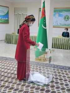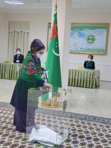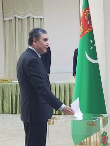Участки работали до 19 часов вечера (17:00 по московскому времени). Отдали свои голоса и действующий президент Гурбангулы Бердымухамедов со своей мамой, которая, несмотря на преклонный возраст, приехала выразить свою волю.