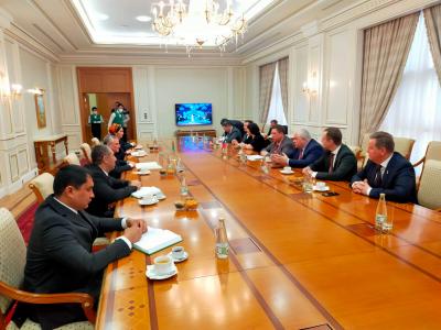 Республика Туркменистан с большим теплом встретила российскую делегацию – с хлебом и солью, как и полагается гостеприимному народу. За время пребывания в Туркменистане была проведена встреча с Чрезвычайным и Полномочным Послом РФ в Туркменистане Александром Викторовичем Блохиным. В ходе обсуждения речь зашла о текущей мировой обстановке и перспективах развития российско-туркменских отношений. Стороны рассмотрели актуальные векторы развития двустороннего взаимодействия и затронули важные политические темы регионального и международного масштаба. Также стороны поговорили о предстоящих президентских выборах и возможных итогах.