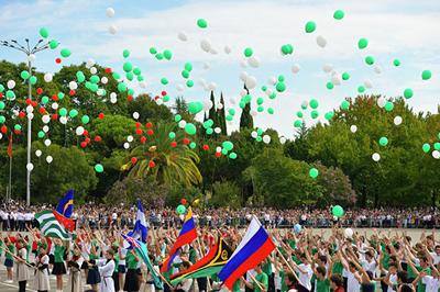 Отпраздновать круглую дату Победы в Абхазию приехали добровольцы с Северного Кавказа, Краснодарского края, Турции, Приднестровья, Южной Осетии и из многих других стран.