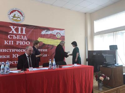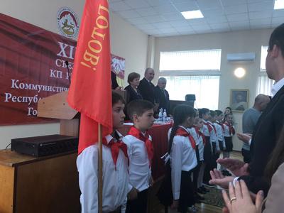 Работу Съезда пришли приветствовать пионеры. А после их приветственного выступления новым членам Партии-молодым коммунистам вручили партийные билеты. Председатель Коммунистической Партии РЮО С.Я. Кочиев пожелал новоиспеченным однопартийцам быть стойкими, высоко нести честь и достоинство коммуниста, активно работать в родной Партии, быть преданным самым светлым идеалам добра и справедливости, служить верой и правдой своему народу.