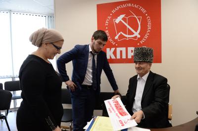 Секретарь ЦК КПРФ, Первый заместитель Председателя ЦС СКП-КПСС, член Комитета ГД по делам Содружества Независимых Государств, евразийской интеграции и связям с соотечественниками Казбек Тайсаев: «Встреча с партийным активом и членами Штаба по выборам прошла на высоком уровне. Первый секретарь Чеченского республиканского отделения КПРФ Халид Магомедович Накаев, молодой, толковый, очень грамотный, авторитетный человек, Второй секретарь Хасмагомед Хамбиевич Дениев один из самых авторитетных и опытных людей в Республики, сформировали очень хорошую команду руководителей районных комитетов партии. Настрой, направленный на работу по предстоящим выборам, боевой. Было задано много вопросов от партийного актива, членов Штаба, на которые мы ответили в полной мере. Коммунисты республики полностью поддерживают Центральный комитет партии, в частности, позицию Г.А Зюганова, выразившего протест против того шельмования, которое идет в адрес нашего кандидата, партии. Партийный актив готов решать задачи, стоящие перед ними, тем более, весь агитационный материал для ведения работы Центральный Комитет партии обеспечил Чеченское отделение КПРФ. Численность партийной организации составляет 1400 человек, этого достаточно, чтобы проводить эффективную агитационную работу в Республике. Но руководство республиканского комитета взяло на себя обязательства, что через два года численность партийной организации дойдет до 3000 человек, и я уверен, что так и будет. Также мы встретились с Председателем Центризберкома Республики, готовность республики к выборам 100%, все условия созданы для честного в рамках закона ведения агитационной работы, никаких проблем по распространению и агитации за нашего кандидата не будет».