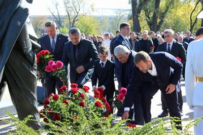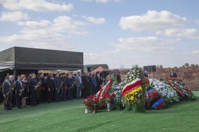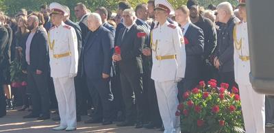 С траурной речью выступили врио Главы ДНР Денис Пушилин, Президент Республики Южная Осетия Анатолий Ильич Бибилов, секретарь ЦК КПРФ, Первый заместитель Председателя ЦС СКП-КПСС, член Комитета Государственной Думы по делам СНГ, связям с соотечественниками и евразийской интеграции Казбек Тайсаев.
