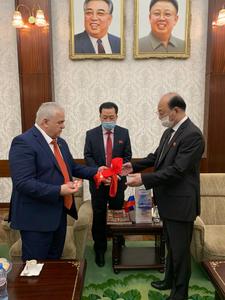 Отдельно на встрече обсудили борьбу с последствиями сильнейшего тайфуна, который обрушился на провинции Северный и Южный Хамген. Посол Син Хон Чхоль проинформировал о предпринимаемых мерах по восстановлению этих районов.