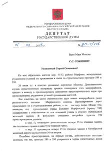 «Депутат Московской городской Думы А.Е. Клычков пять раз письменно обращался к Вашему заместителю по строительству Хуснуллину М.Ш. с просьбой о совместной встрече с инициативной группой жителей района, Вы лично давали такое указание 15 февраля т.г. на встрече с фракцией КПРФ в Государственной Думе РФ. Но каждый раз вместо встреч приходили ответы о правильности строительства дорог», - отмечает в письме Иван Мельников.