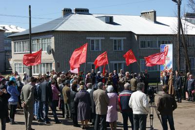 Перед жителями Советского района, а также гостями из г.Кирова, Пижанского, и других районов выступили первый секретарь комитета Советского районного отделения КПРФ Н.М. Кошкина, военный комиссар Советского района М.А. Осенников, кандидат в члены ЦК КПРФ, секретарь обкома по идеологии А.В. Вотинцев, заместитель председателя Законодательного Собрания области М.С. Созонтова, заместитель главы администрации Советского района В.П. Ошуев, глава города Советска Т.М. Кульпина, первый секретарь комитета Пижанского районного отделения КПРФ В.М. Ченцов, депутат Кировской городской Думы, заместитель генерального директора Кировского ССК А.А. Овечкин, член ЦК КПРФ, первый секретарь обкома КПРФ С.П. Мамаев.
