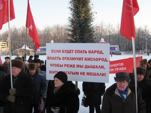 Митинг прошел под лозунгами: «Рост тарифов ЖКХ – террор против народа»; «На сверхдоходы богатых –