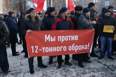 «Мы против 12-тонногоо оброка!», «Медведев, ты нарушаешь 74 статью Конституции России и чинишь препятствия для свободного перемещения товаров!», «Ротенберг и "Платон" (плата за тонну) – грабители на дорогах России!», «Кировчане! Платные дороги – это очередной виток роста цен на все товары!», «Против оброка "Платона"!», – под такими лозунгами проходила акция протеста.