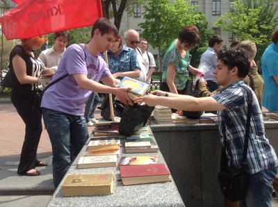 После вступительного слова все участники акции приступил к выбору книг, которые были представлены самыми различными жанрами и авторами. Отечественная и мировая литературная классика, научная фантастика, исторические романы, поэзия, научно-популярная литература – представительство самое разноплановое. В итоге каждая книга смогла найти своего читателя. Нужно отметить, что к акции периодически присоединялись прохожие, приятно удивленные инициативой коммунистов. Некоторые из граждан пожелали предоставить на следующие акции книги из своей библиотеки. Вместе с книгами, каждый участник мероприятия получал свежий номер газеты «Народный авангард» и спецвыпуск «Правды».