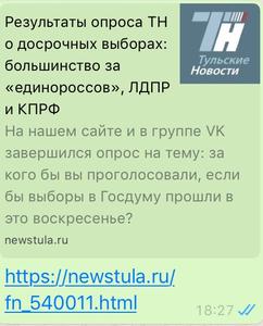 И вот происходит такой "конфуз". Читатели сайта - а по данным "Яндекс-метрика" его посещают до 36 тысяч уникальных пользователей в день - неожиданно отдают предпочтение КПРФ. Если бы выборы Госдумы состоялись завтра, за партию, чей рейтинг так усердно пытаются опустить "Тульские новости", проголосовали бы 64 процента участников опроса. А вот "Единой России" и ЛДПР, несмотря на весь новостной позитив и первые строчки списка, свои голоса отдали бы только 2 и 5 процентов опрошенных.