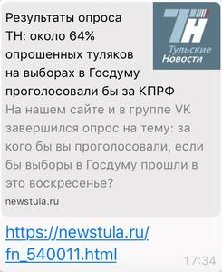 Кого испугали 64% КПРФ? В Тульской области информационное агентство спешно изменило название статьи о высоком рейтинге компартии среди своих читателей