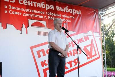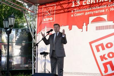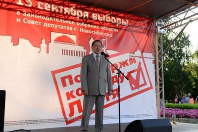 Мероприятие началось в 18-00. Первым выступил первый секретарь областного комитета КПРФ Анатолий Локоть — лидер списка партии в Законодательное собрание Новосибирской области. Он, как и положено по закону, взял отпуск за свой счет, чтобы исключить нападки оппонентов:
