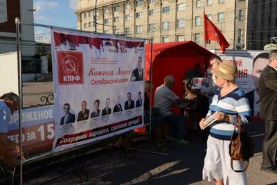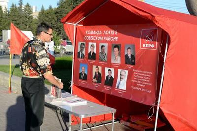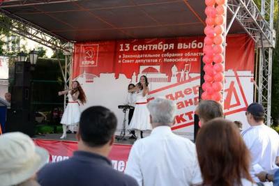 6 августа в Первомайский сквер впервые после «Дня Правды» вернулись красные знамена и символика КПРФ — состоялась презентация «команды Локтя» — списка кандидатов на выборах 13 сентября.