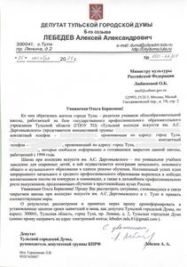 На защиту детей и их родителей встал депутат-коммунист Алексей Лебедев, широко известный в Тульской области своей принципиальной позицией и борьбой против мусорной реформы. Он встретился с заявителями, направил депутатские запросы Министру культуры России и в Генеральную прокуратуру.