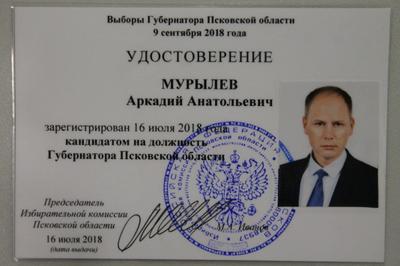 Избирательная комиссия Псковской области на заседании 16 июля зарегистрировала претендента от партии КПРФ Аркадия Мурылёва в качестве кандидата на пост губернатора области на предстоящих 9 сентября выборах.