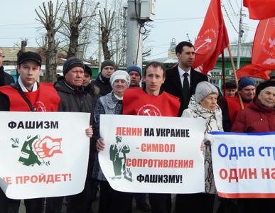 На акцию коммунисты вышли с плакатами: «Крым, коммунисты Барнаула с тобой!», «Остановим фашизм на братской Украине!», «Фашизм не пройдет!», «Ленин на Украине – символ сопротивления фашизму!».