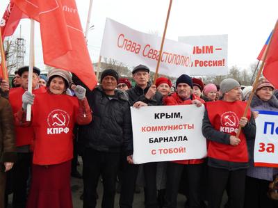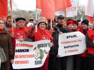 18 марта барнаульские коммунисты приняли участие в городском митинге в поддержку решения жителей Крыма о присоединении к России, который прошел на площади Свободы. Мероприятие было организовано по инициативе ряда общественных организаций города Барнаула.