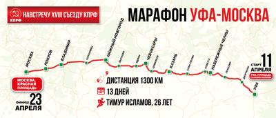 Коммунисты Башкирии дали старт уникальному марафону Уфа-Москва протяженностью 1300 км, приуроченному XVIII съезду КПРФ