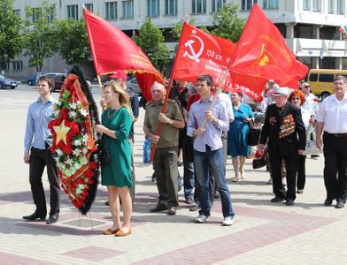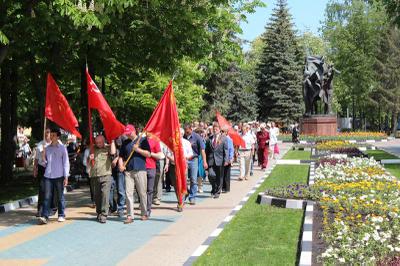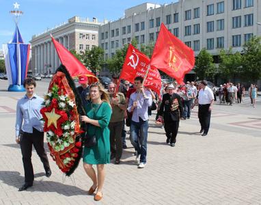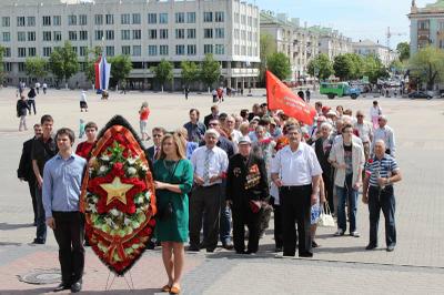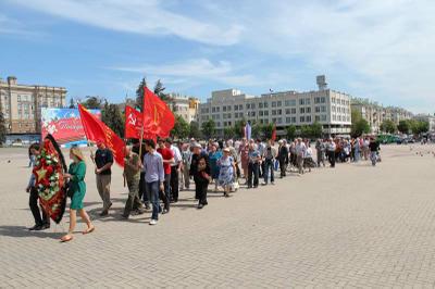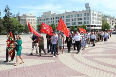 В рамках общегородских мероприятий, представители Комитетов областного и городского отделений КПРФ, активисты ЛКСМ, БРО «Дети В.О.В.», ДПА, ССО, ВЖС «Надежда России», ветераны войны и участники БРО «Русский Лад», выстроившись в праздничную колонну, украшенную флагами КПРФ, Знаменем Победы и красными гвоздиками прошлись по одной из центральных улиц города к городской площади.