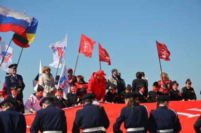 Добавим, что международный общественный проект – автопробег «Наша Великая Победа» стартовал 23 марта в городе-герое Севастополе. Масштабная акция поддержана Россией, Украиной, Республикой Беларусь, Приднестровской Молдавской Республикой и Казахстаном. Участники преодолевают более 25 тысяч километров и посещают 95 городов. Финиш автопробега состоится 8 мая в Москве. 9 мая совместно с представителями общественности столицы России участники проекта вынесут на Красную площадь копию Знамени Победы, а 10 мая знамя будет торжественно передано на хранение в Центральный музей Великой Отечественной войны Москвы.