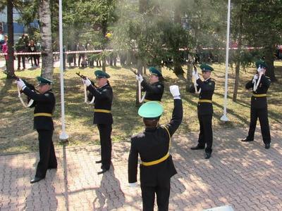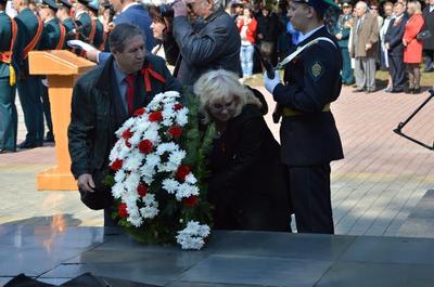 От областной партийной организации коммунистов Еврейской автономии первый секретарь регионального отделения КПРФ Владимир Фишман и первый секретарь Биробиджанского горкома КПРФ Алла Палькина возложили к Вечному огню в Сквере Победы Биробиджана цветы. Затем прозвучал ружейный салют. Собравшиеся на торжественное мероприятие люди почтили память советских воинов минутой молчания.