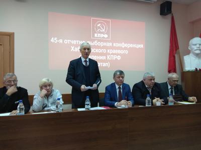 24 ноября состоялся 2 этап 45-й отчетно-выборной конференции Хабаровского краевого отделения КПРФ. В конференции приняли участие зам. Председателя ЦК КПРФ, секретарь ЦК КПРФ Д.Г. Новиков и секретарь ЦК КПРФ К.К. Тайсаев, от имени Центрального комитета партии пожелавшие делегатам конференции продуктивной работы.