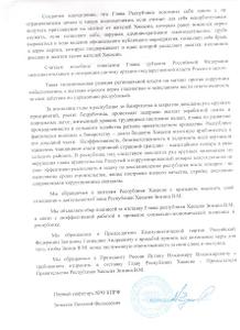 Мы обращаемся к Президенту России Владимиру Владимировичу Путину с требованием отправить в отставку Главу Республики Хакасия - Председателя Правительства Республики Хакасия В.М. Зимина.
