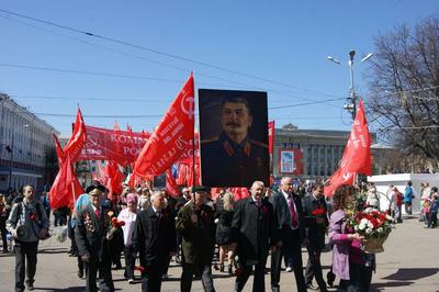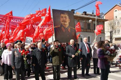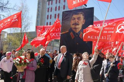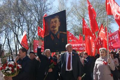 Стоявшие плотной стеной по маршруту следования колонны жители города радостно приветствовали участников шествия, подхватывали лозунги и кричалки КПРФ, охотно фотографировались на фоне большого портрета генералиссимуса И.В. Сталина.