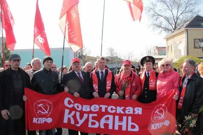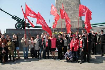 Накануне праздника кубанцами были доставлены для керченских товарищей двадцать флагов с символикой КПРФ и копии Знамени Победы, а также несколько десятков экземпляров Устава КПРФ.