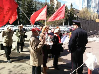 Отсутствие разрешения на проведение пикета не остановило представителей Куйбышевского и Первомайского местных отделений. С развернутыми знаменами и транспарантами они пришли к зданию посольства Болгарии и передали просьбу принять подарки от Московского горкома КПРФ. Подобные действия коммунистов, по всей видимости, застали в врасплох дипломатических работников, которых наверняка к тому моменту уже предупредили о том, что пикет проводиться не будет. Они долго не решались выйти на контакт.