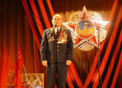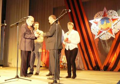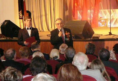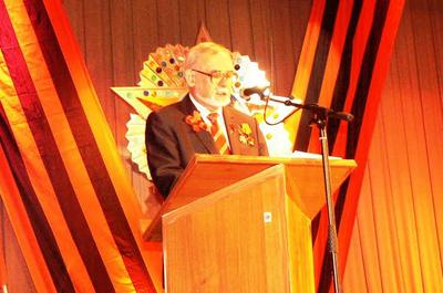 На сцену был приглашен участник Великой Отечественной войны,коммунист В.Т. Серков. В 19 летВладимир Трофимович стал командиром пулеметного взвода, а закончил службу в звании полковника начальником штаба дивизии, награжден пятью орденами, 25-ю медалями. Он рассказал о военных годах, поздравил всех сДнем Победы.