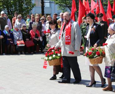 Флаги партии, под руководством которой страна защищалась от германских захватчиков, флаги Великой Победы развевались над собравшимися. Красные гвоздики в руках у участников митинга символизировали капли крови.
