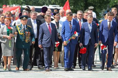 В 10.00 в Первомайском сквере прошла утренняя зарядка с чемпионами. После чего, в 12.00 состоялось традиционное возложение цветов и венков к Монументу Славы.