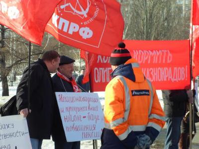 29 марта Ленинский райком КПРФ во главе с секретарем крайкома КПРФ Г.А. Сторожевым организовал пикет, который состоялся уже традиционно в центре города на улице Попова, где всегда много народа, и тематика акций вызывает не только интерес, но заставляет думать и делать выводы.