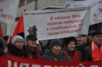 Свыше трех сотен человек приняли участие в состоявшемся 13 декабря 2015 года в Санкт-Петербурге в Невском районе митинге в защиту прав участников садоводческих товариществ, организованном Санкт-Петербургским городским отделением КПРФ.