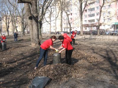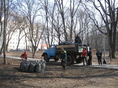 Городские службы обеспечили добровольцев граблями, метлами, мешками, но участников субботника оказалось значительно больше, чем инструментария. За несколько часов работы была убрана одна аллея парка и собрано полсотни мешков мусора.
